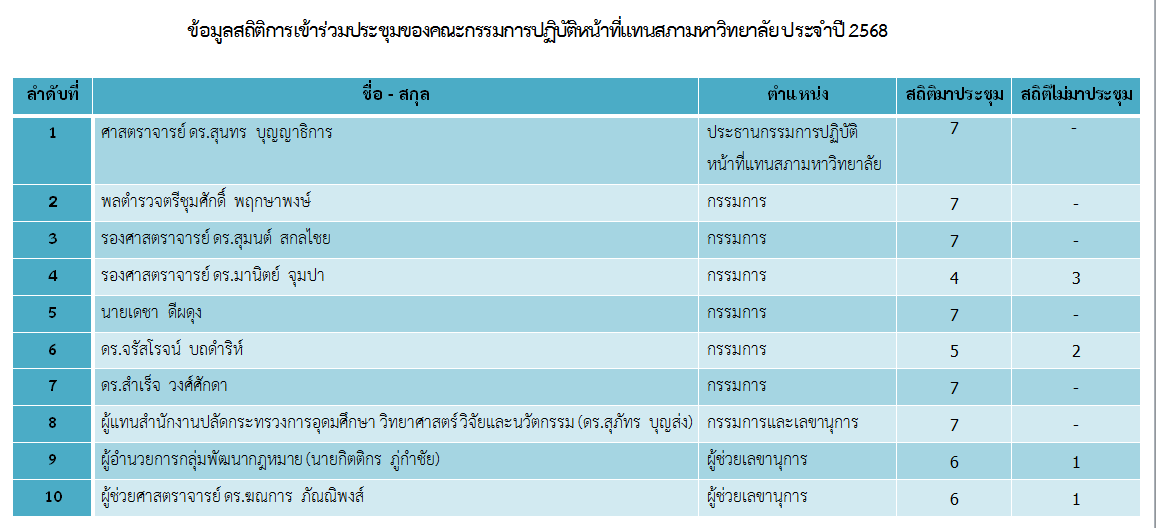 - ประกาศมหาวิทยาลัยฯ เรื่อง กำหนดอัตราค่าเบี้ยประชุมของคณะกรรมการ คณะอนุกรรมการ และที่ปรึกษาในคณะกรรมการ