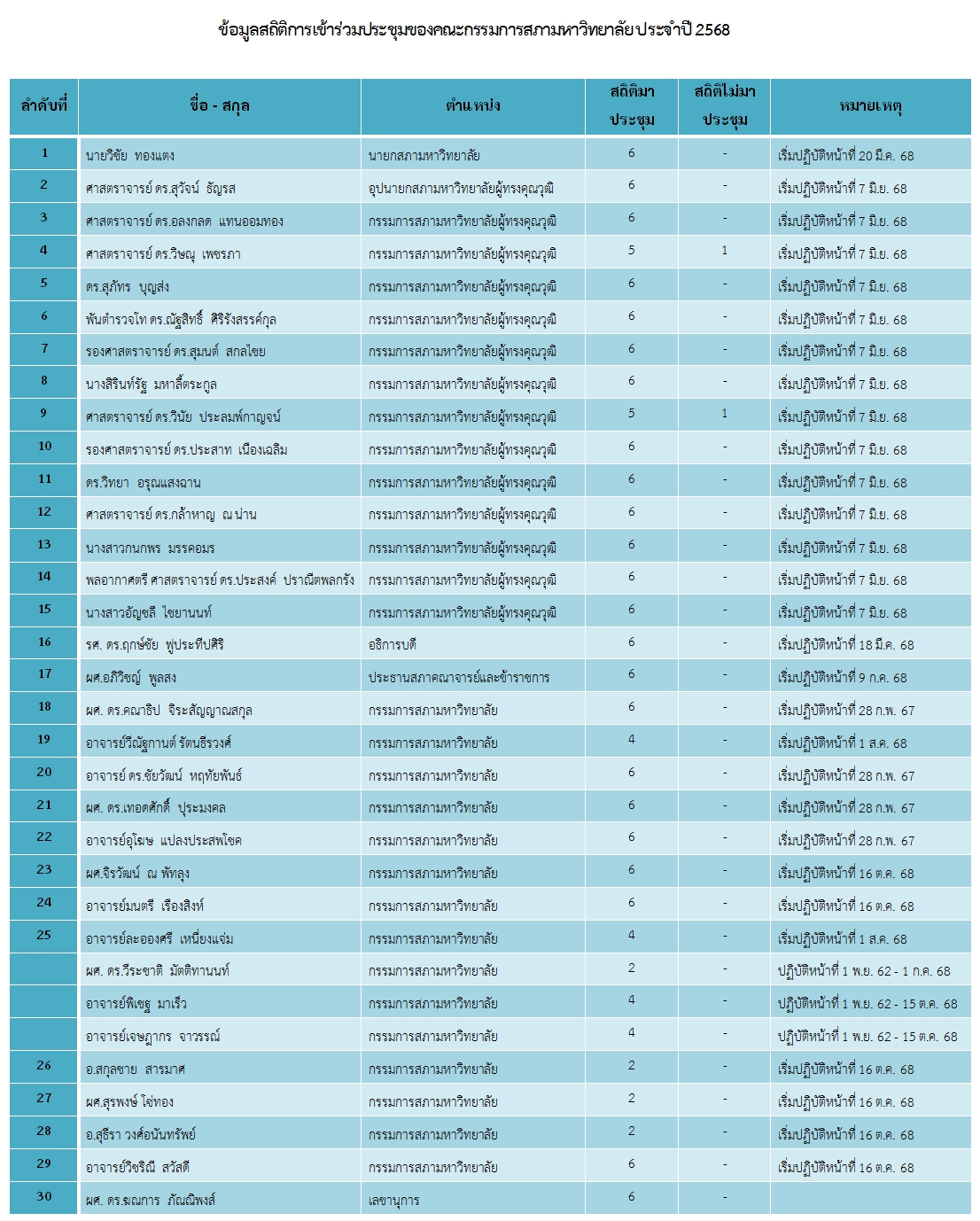 - ประกาศสำนักนายกรัฐมนตรี เรื่อง แต่งตั้งกรรมการสภามหาวิทยาลัยผู้ทรงคุณวุฒิ ของมหาวิทยาลัยเทคโนโลยีราชมงคลตะวันออก ประกาศ ณ วันที่ 9 มิถุนายน 2568